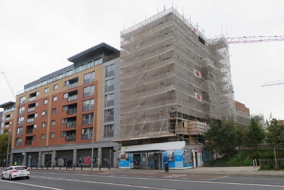 New ”rapid build” social housing still being built on Bonham Street, overlooking Bridgefoot Park. (Photo by Naoise Naylon)