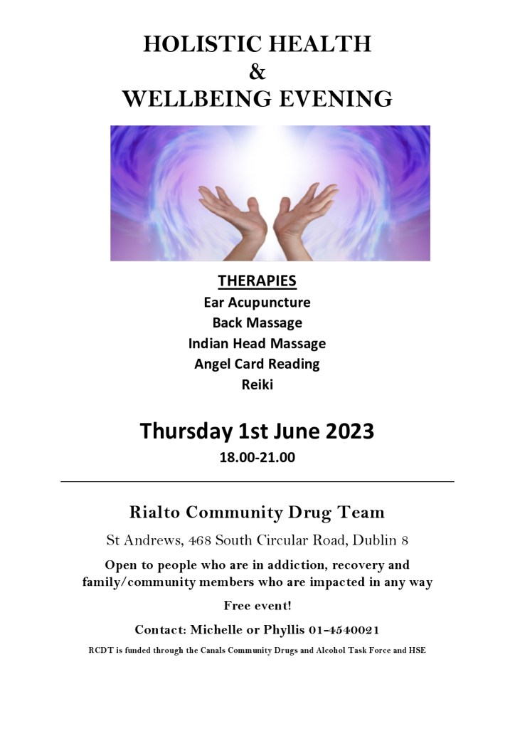 HOLISTIC HEALTH & WELLBEING EVENING JUNE 1st Posted byRCDT1992GMay 31, 2023June 1, 2023Posted inNews & Information. Share this: Click to share on X (Opens in new window) X Click to share on Facebook (Opens in new window) Facebook Like Loading... Related