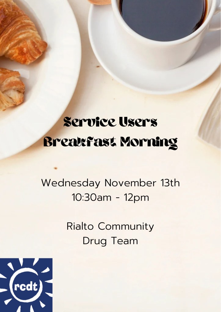 SERVICE USERS BREAKFAST. Posted byRCDT1992GNovember 7, 2024Posted inNews & Information. Share this: Click to share on X (Opens in new window) X Click to share on Facebook (Opens in new window) Facebook Like Loading... Related