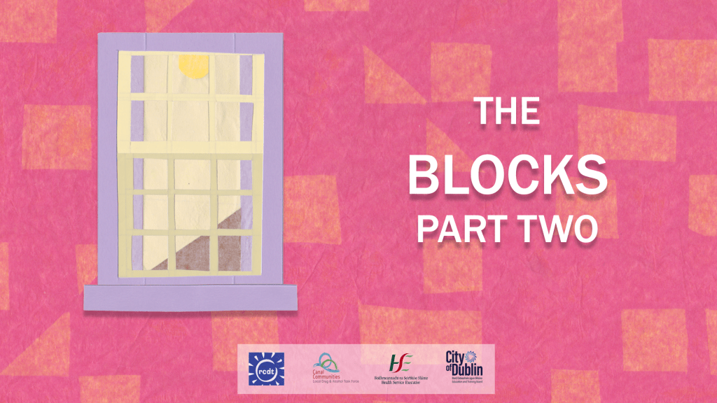 The Blocks Part Two is a short animated film produced as part of an ongoing community arts project in Rialto, Dublin. Filmmakers Gary Gowran and Sadhbh Lawlor have been working with the Rialto Community Drug Team, facilitator Joanie Whyte and the Step by Step family support group since 2018.